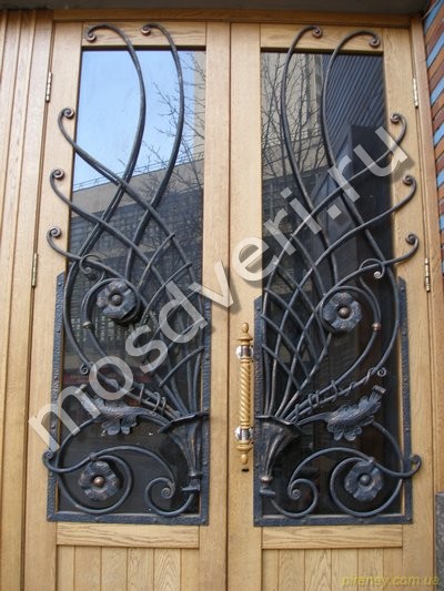 Фото установленных дверей с ковкой